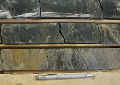 - A sulphide bearing shear zone in the center of the property, named the Central Sulphide Shear Zone, was tested at depth with three (3) drill holes to hole depths of 1,479 metres.